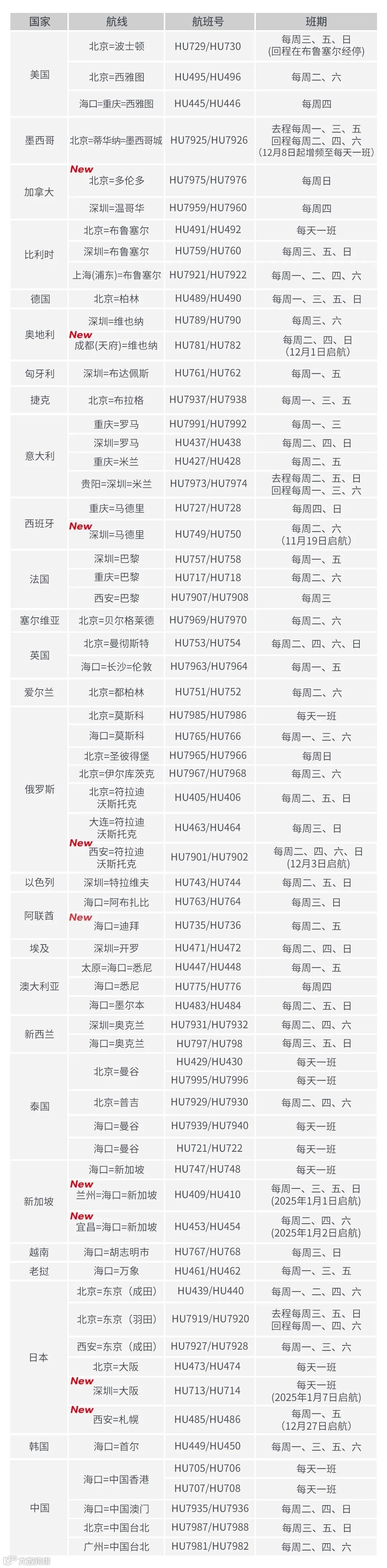 ·航空公司:海南航空、大新华航空、金鹏航空、天津航空、祥鹏航空、首都航空、西部航空、北部湾航空、长安航空、乌鲁木齐航空、福州航空等。