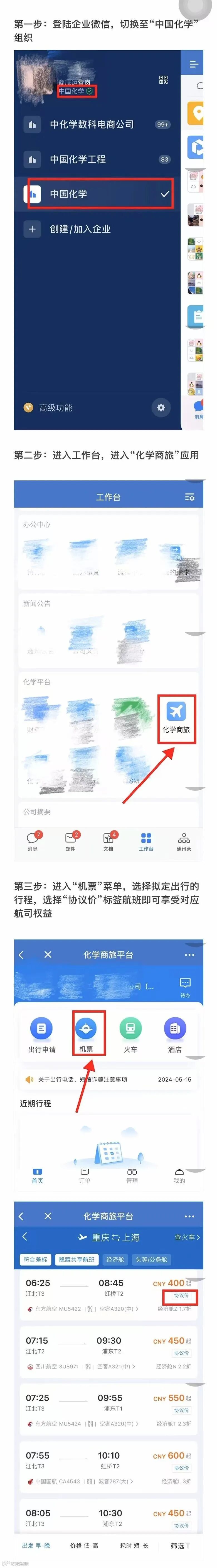手机端:企业微信”中国化学“—工作台—化学商旅