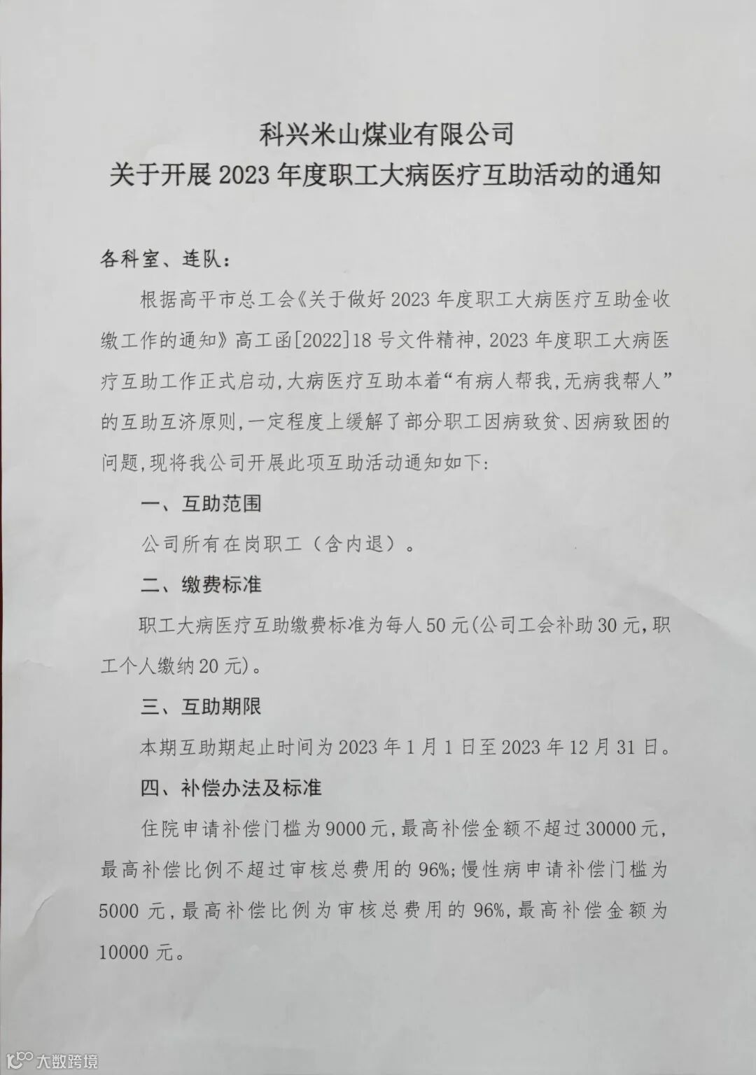 为保证此次收缴工作顺利完成,公司工会印发了《关于开展2023年度职工大病医疗互助活动的通知》,各科队按照通知要求迅速开展工作,全体职工充分认识到开展互助工作的重要性和必要性,形成“有病人帮我,无病我帮人”的互助互济良好氛围。
