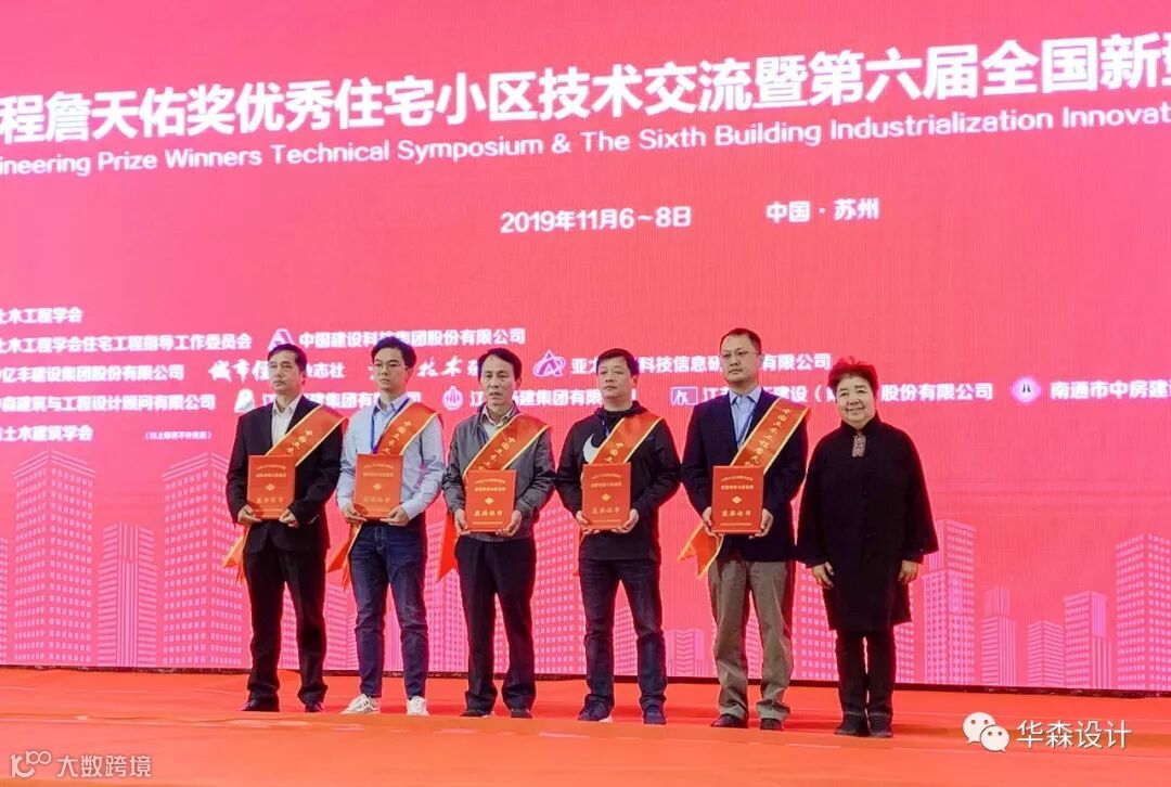 2019年11月7日,在苏州市举行的2019年中国土木工程詹天佑奖优秀住宅小区技术交流会上,揭晓了“2019中国土木工程詹天佑奖优秀住宅小区金奖”获奖名单,华森公司设计的扬州湖畔御景园项目位列其中。南京分公司总经理刘新代表华森公司上台领奖。