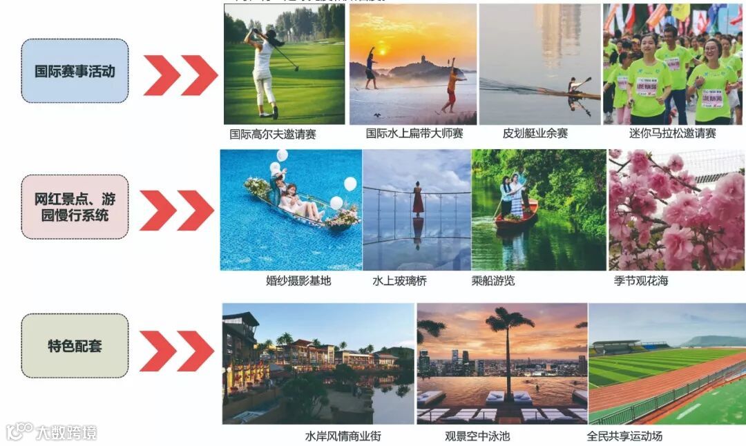 假公寓、风情商业街、主题旅游区、景观花海区、户外运动拓展、特色种植区等。