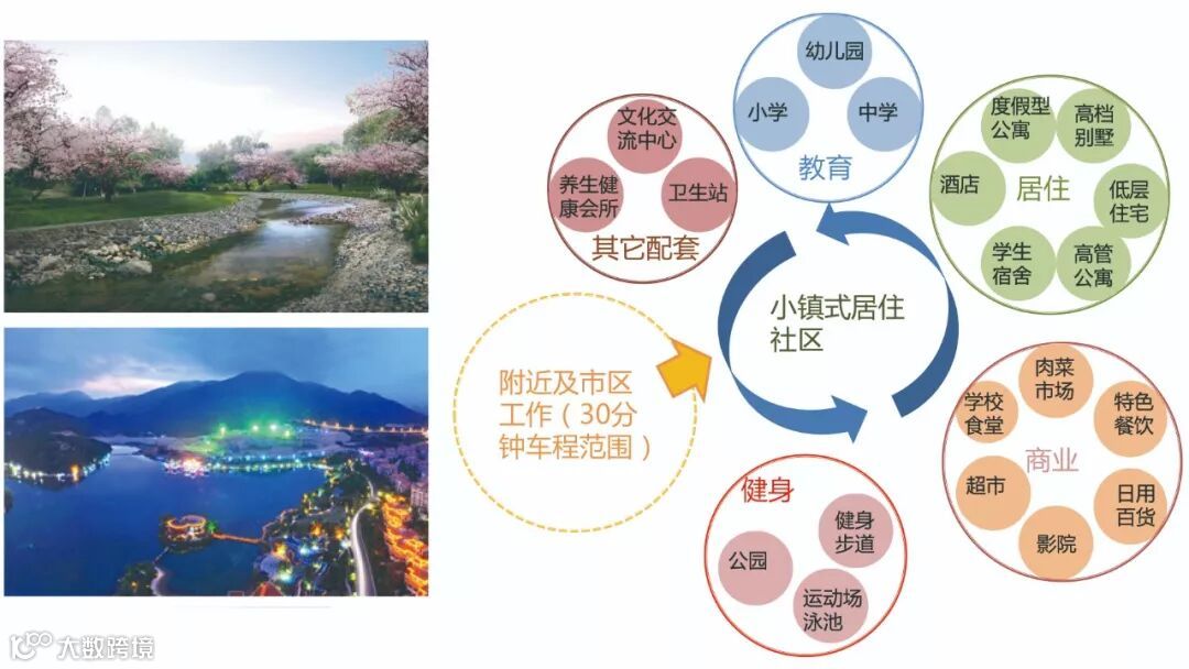 “生态小镇” ——以生态为基础,建设几大特色功能区。有健康会所、养生居所、养生度