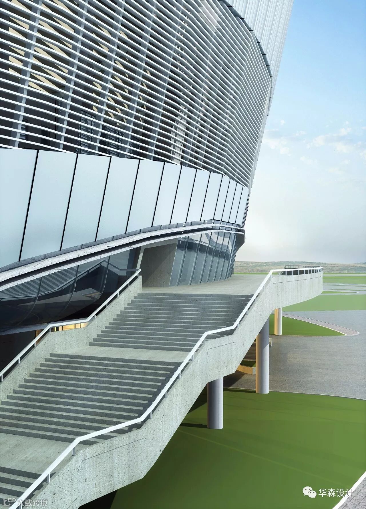 项目以“云端华尔兹”作为总体规划和建筑造型设计核心理念,从蒙古民族独特的云纹造型和漫瀚调这种独特的音乐形式出发,将整个场区理解为一场盛大的音乐舞蹈场面,通过空间布局和景观组织,使体育中心与城市规划理念相辅相成,与城市景观设置相得益彰。虽采用了较为经济的管桁架结构,但在建筑造型方面却突破了传统管桁架结构体育场的造型设计,建筑的顶棚及立面由镀铝锌钢板材料覆盖,自上而下一气呵成,浑然天成。