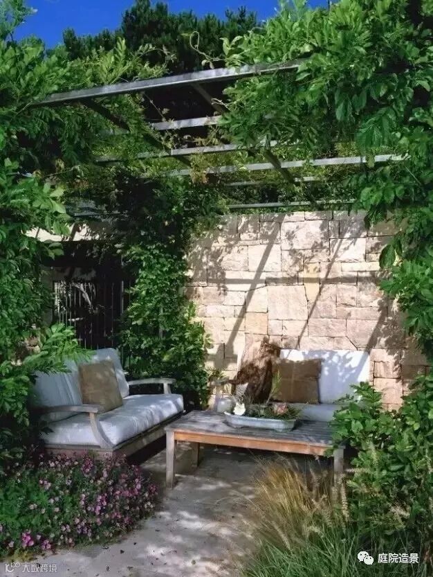 2、藤架下摆个小沙发茶几,午饭后的休憩好地方;