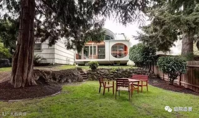 33、门前的大树不一定要砍掉,保留下来并在树下做个草坪;