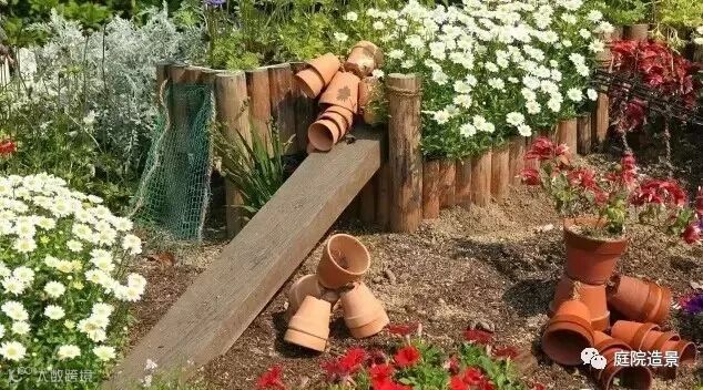 8、面积再大点的庭院,可以用木栏围起来,然后做个活动小院子,摆上盆栽;