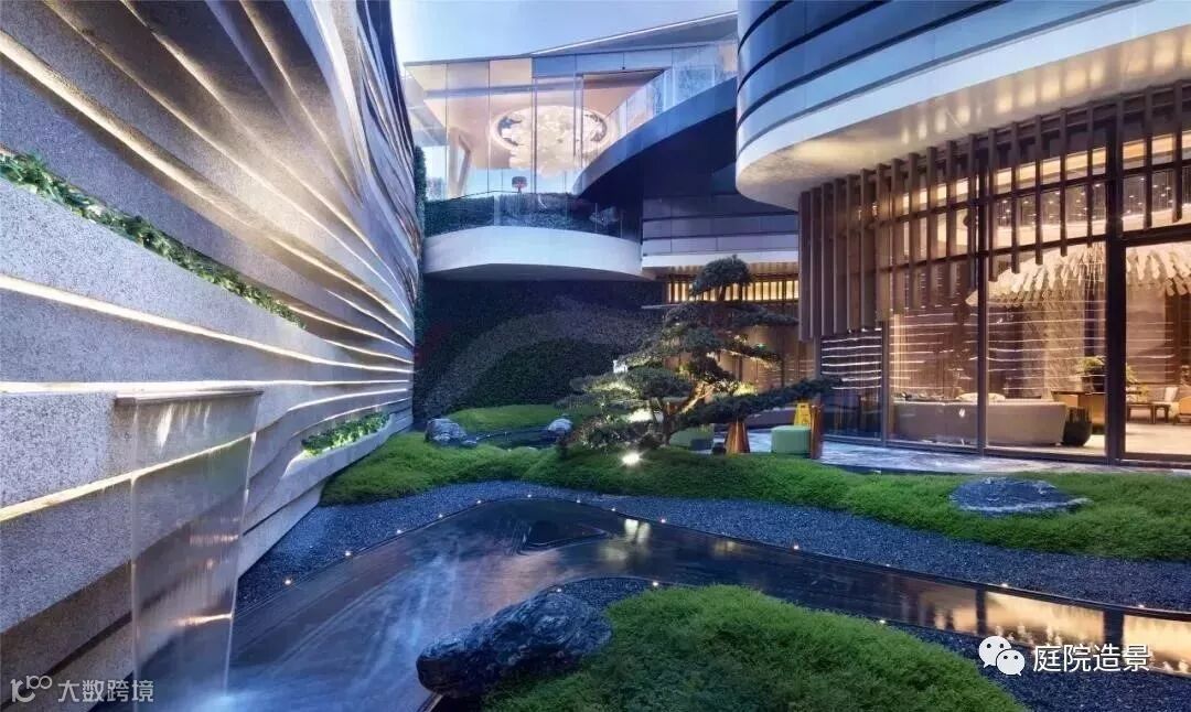 下沉景观设计中运用了大量的植物花草和水景等自然元素