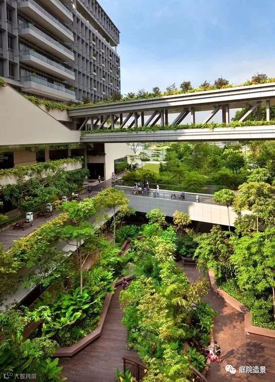 通过人工的方式将高差化弊为利,使得原本浪费的空间变成可以拥抱阳光的美丽景观