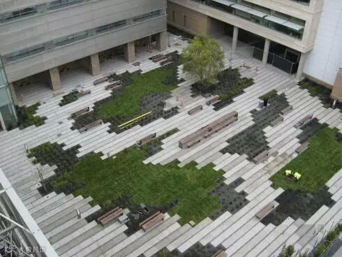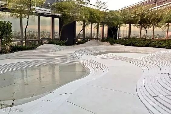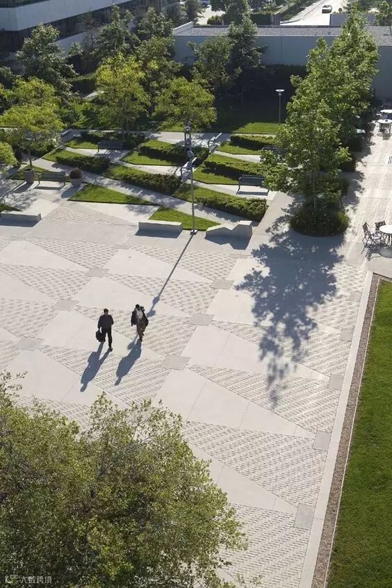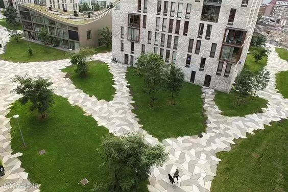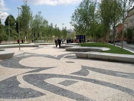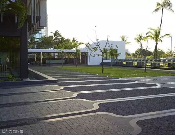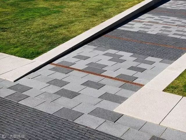 在各类景观空间中为了限定某一空间或强调其等级,都会通过基面也就是铺装的材料差异,形成界限清晰的边界而划分出不同功能和特质的场所。