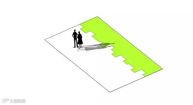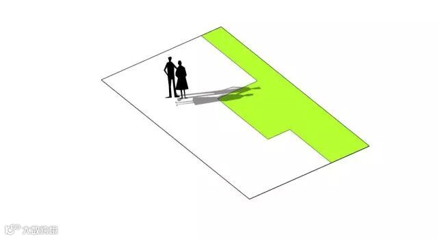 对于过长的边界区域,打破其机械平淡的直线最简单方式是,将其划分为几段线段,这样还可以产生内凹空间,可以作为休憩空间或放置创意元素。如果进一步改变线段之间的角度,会形成更具灵活性的空间组合。