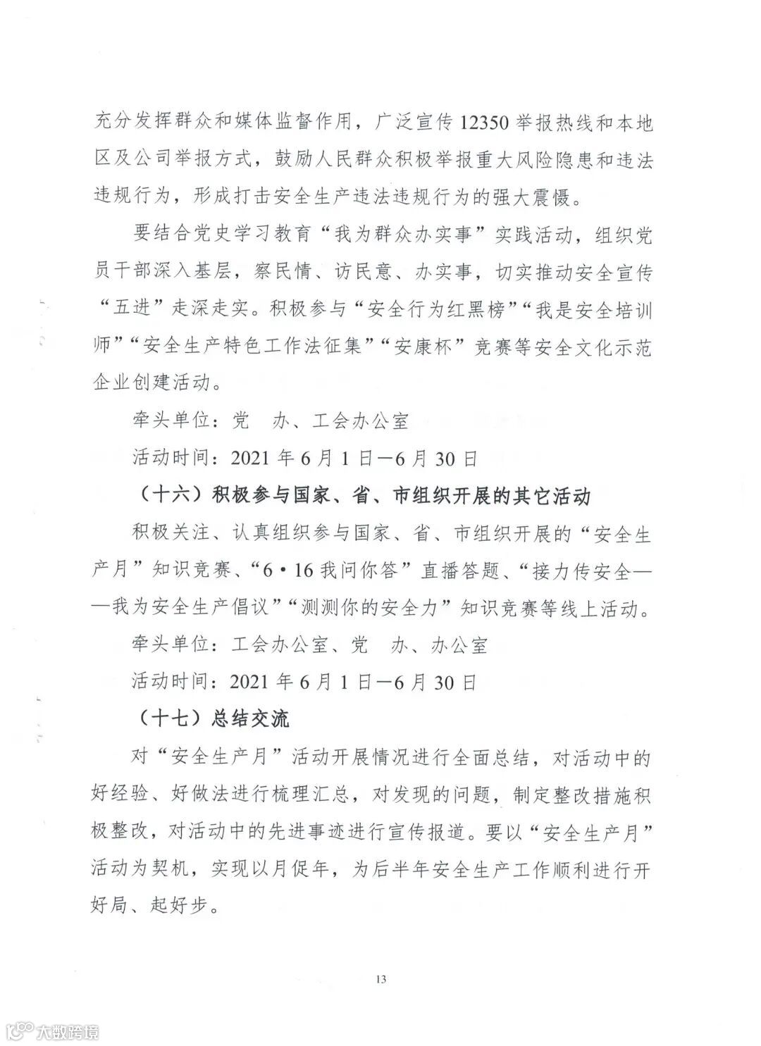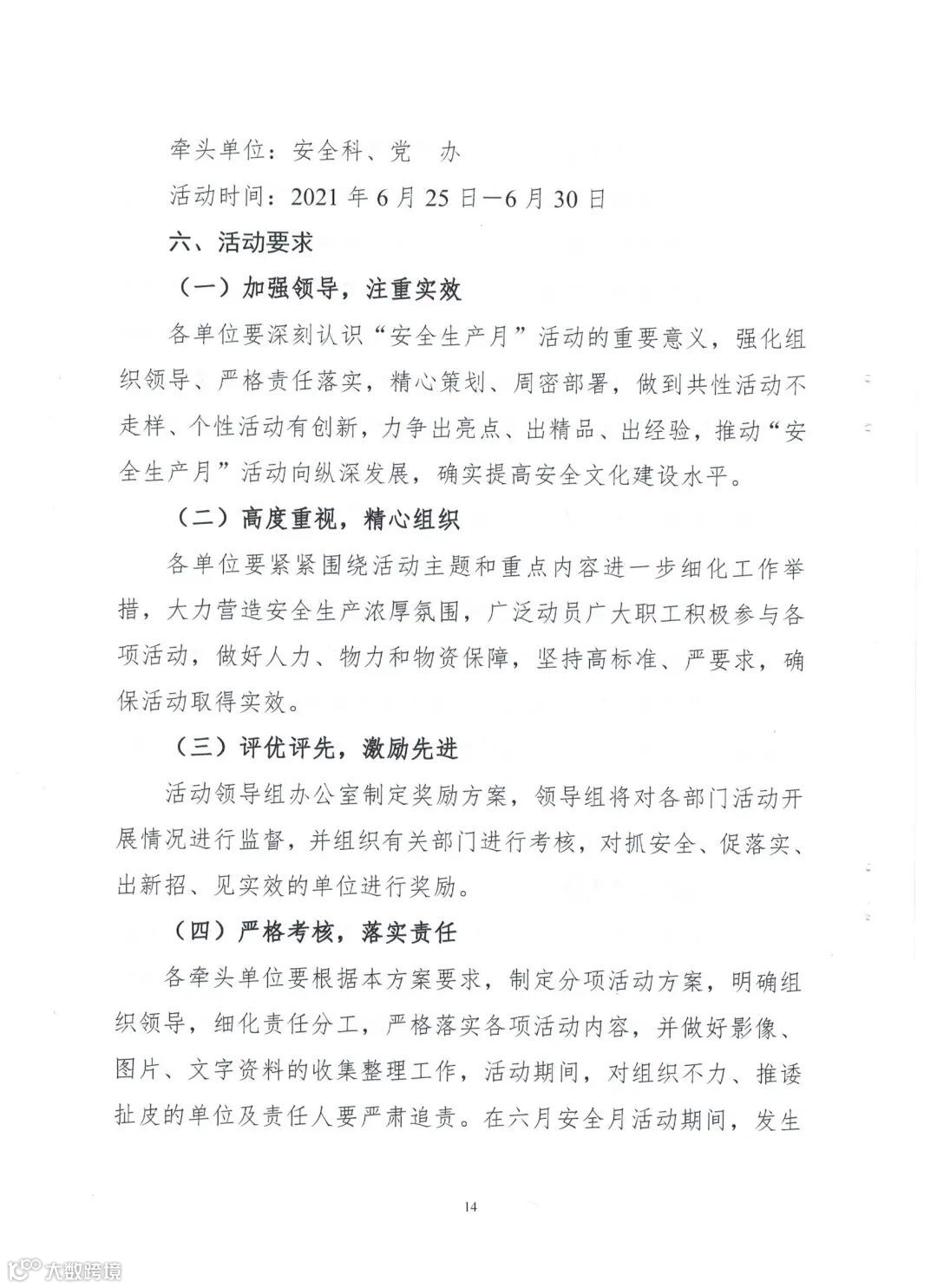 安全生产月丨关于开展2021年“安全生产月”活动实施方案
