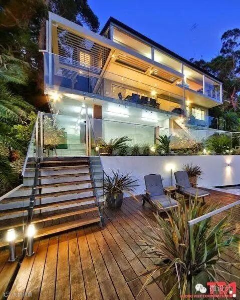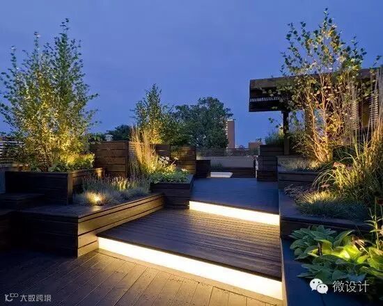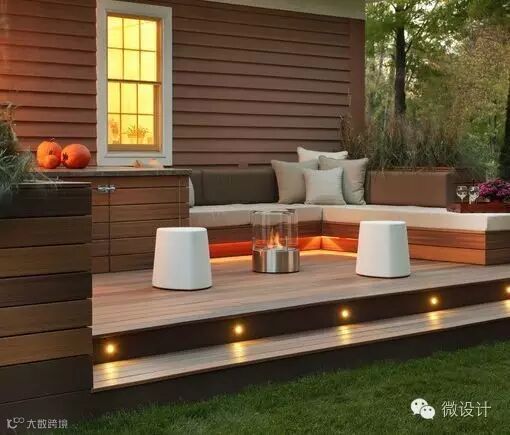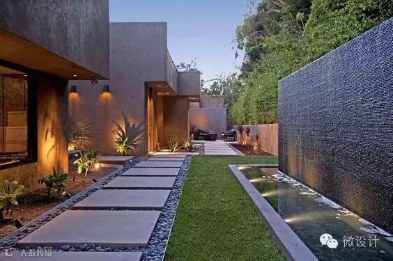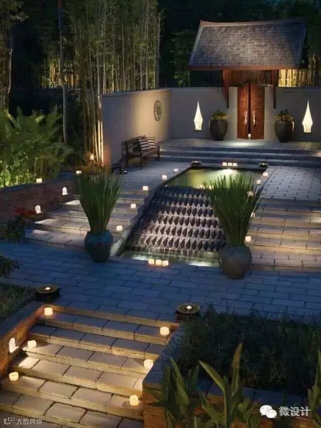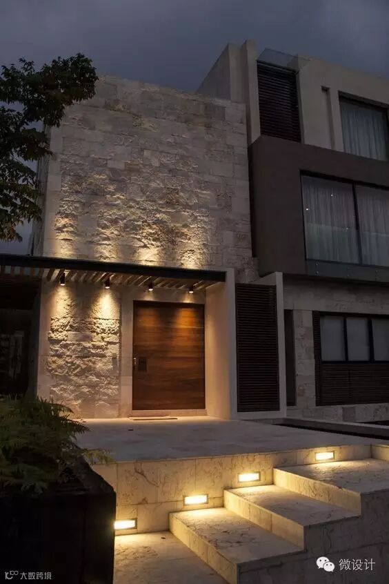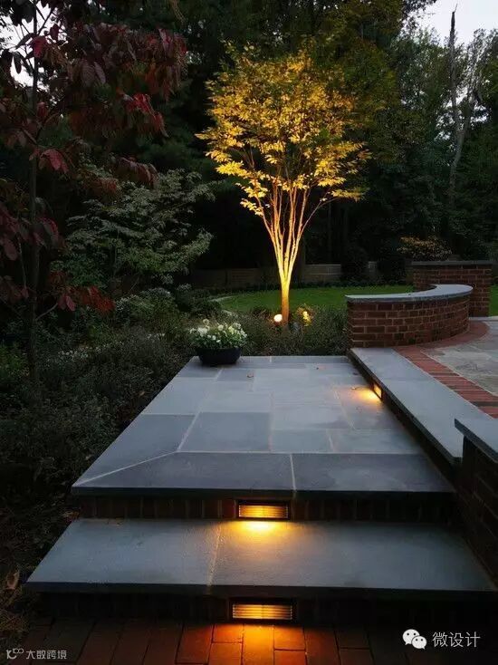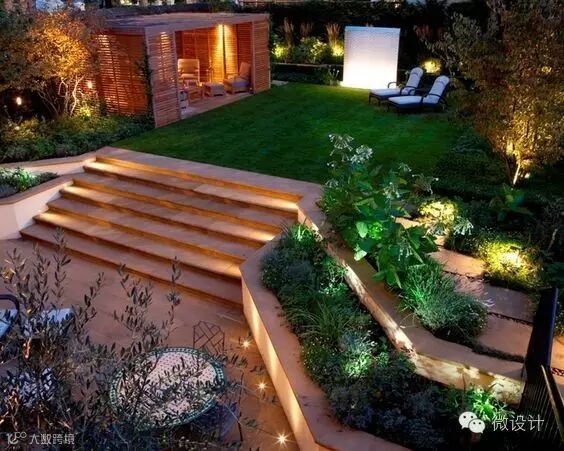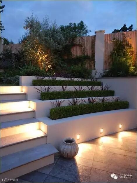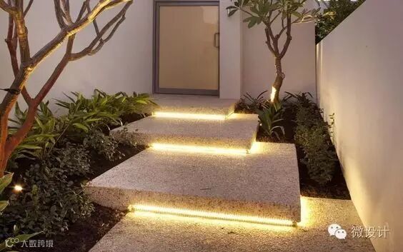 可以将台阶灯镶嵌在侧墙,