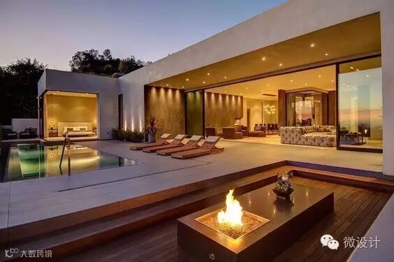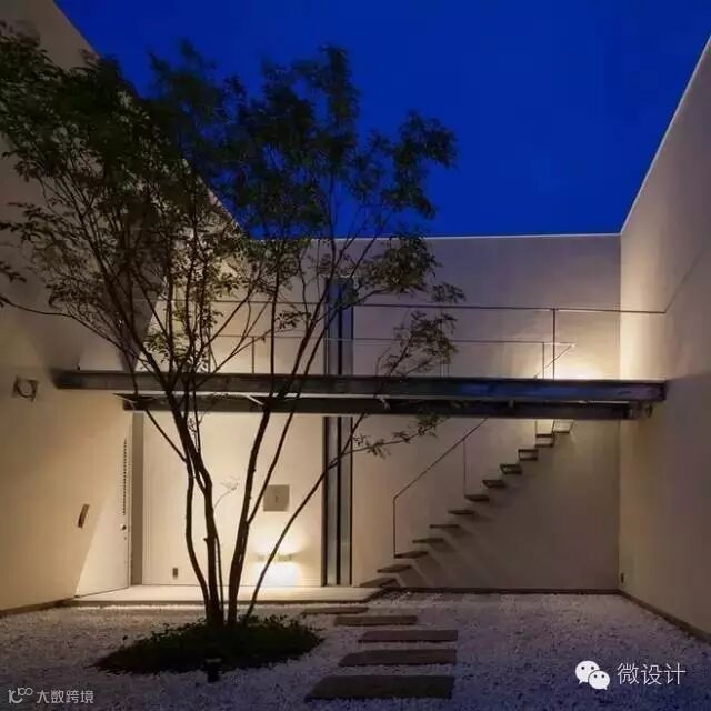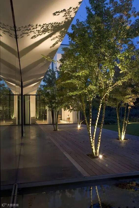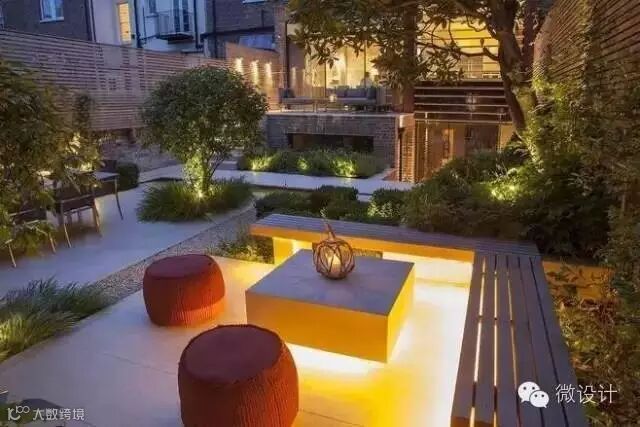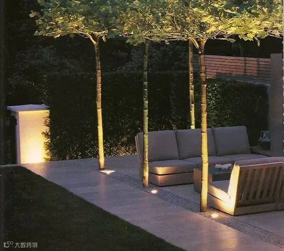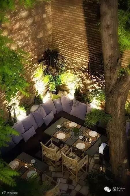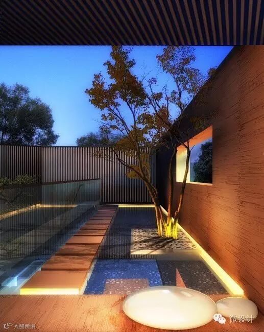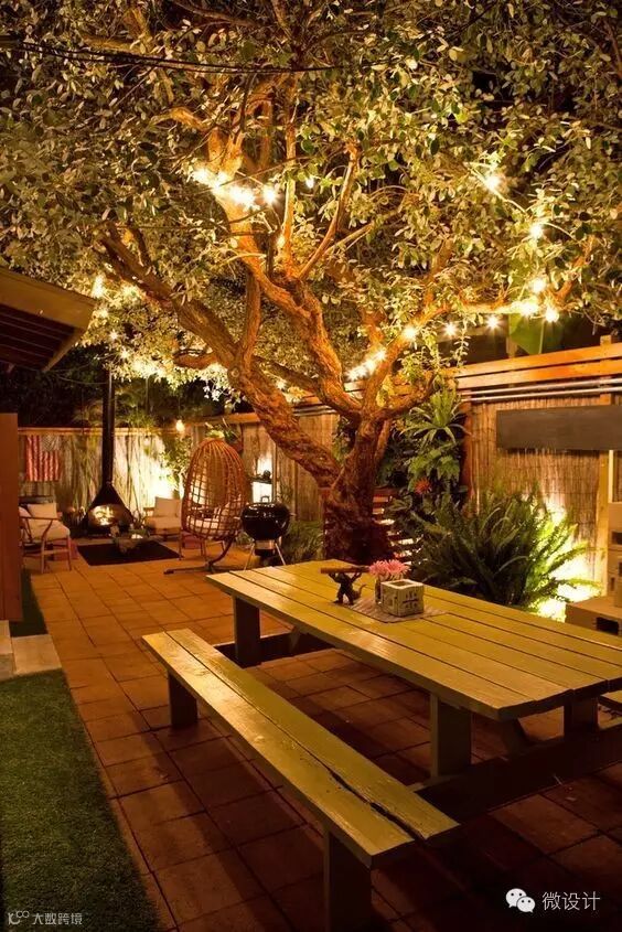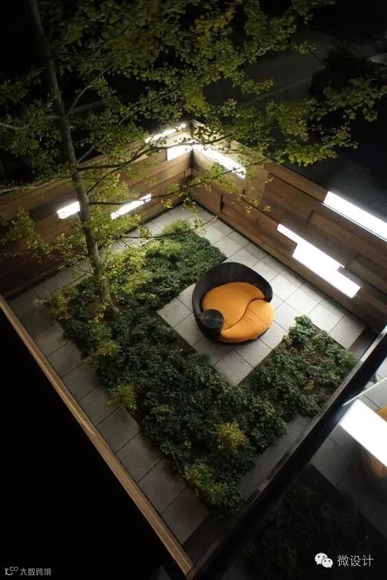 灯光给了院子围合感,