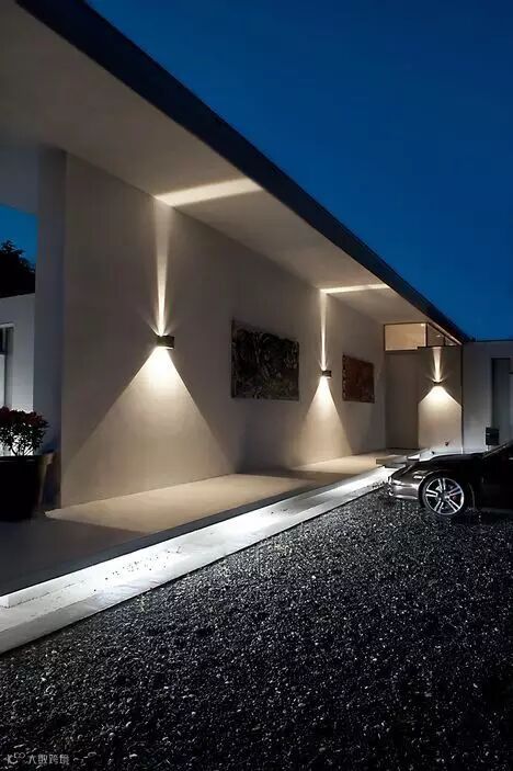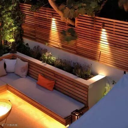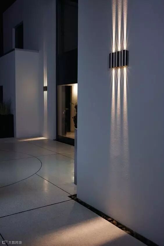 在院墙上布置一排射灯,