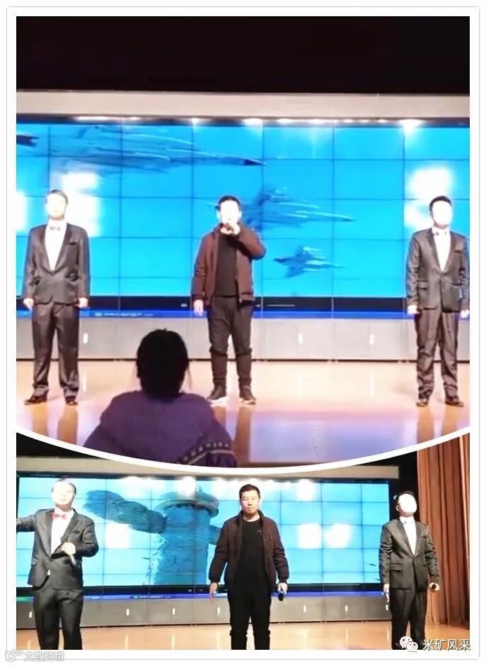 歌曲《我爱祖国的蓝天》朱卫军等三人通过自己洪亮的歌喉,表达了对祖国真挚的热爱和美好的祝愿,传递了米矿人的爱国之情。