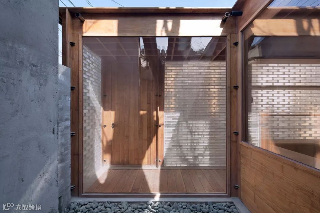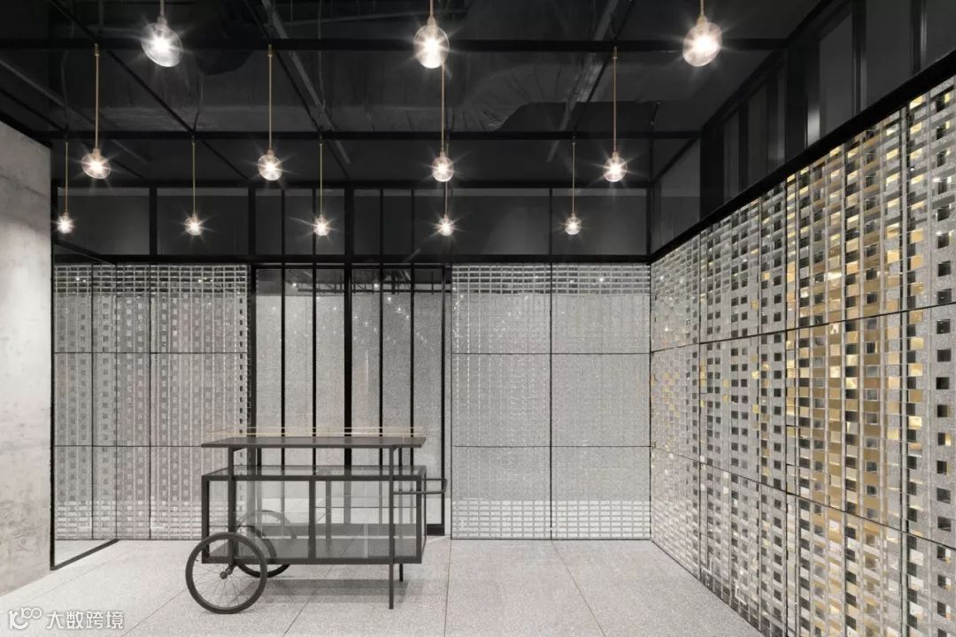 将压铸玻璃砖按照传统方法搭建,精心拼接后形成的垂直墙面,能最大程度地引入自然光,一定程度上也保护了空间私密性 ▼