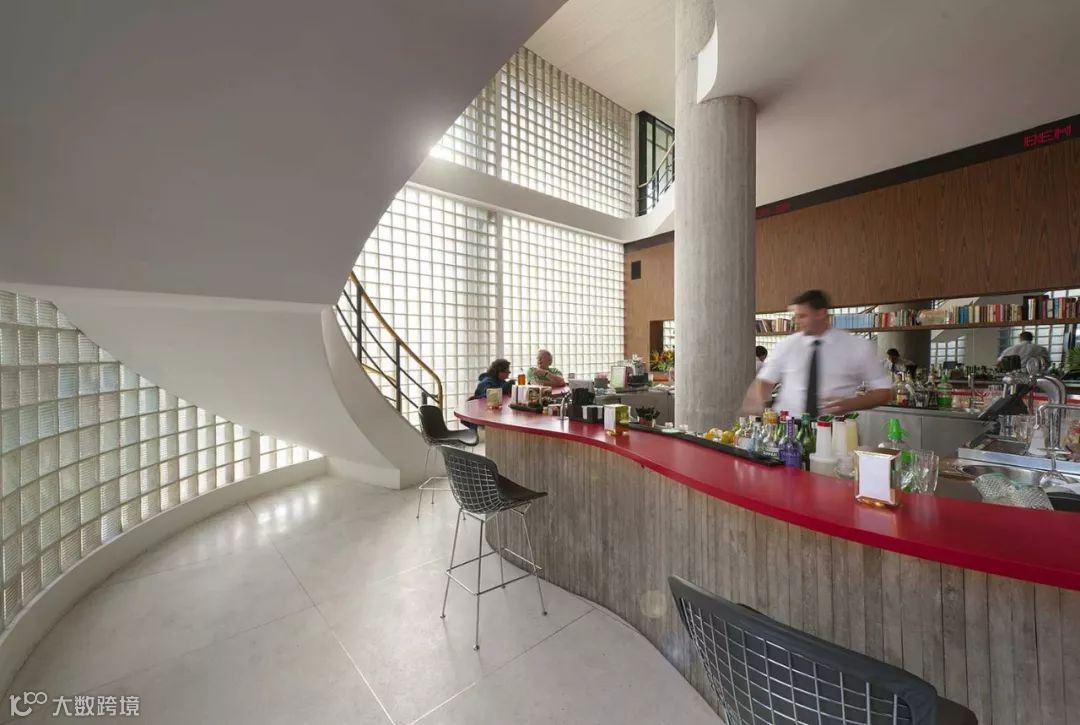 这道墙提供良好而且柔和的光线,让室内空间更加明亮,同时也增加了酒吧的宽敞感 ▼