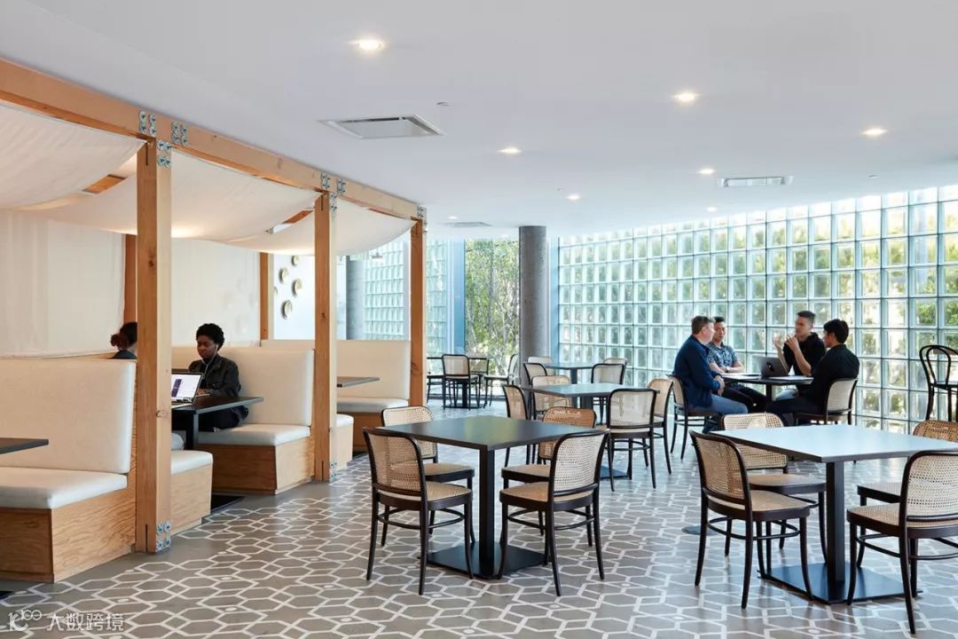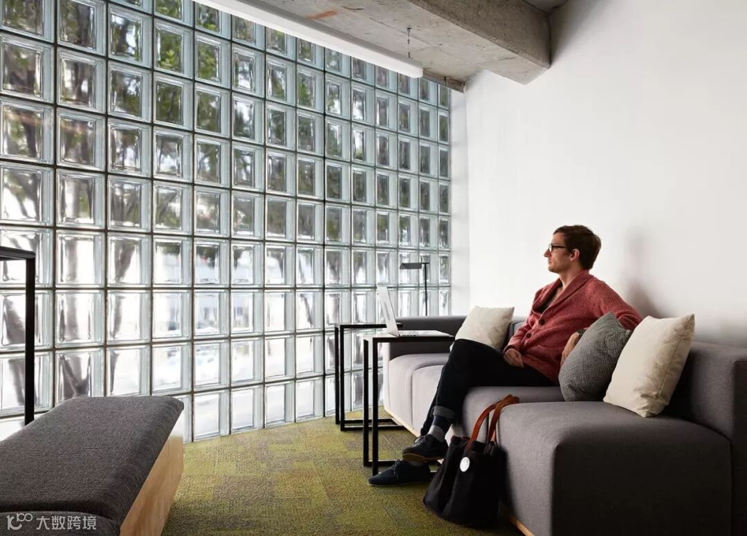 玻璃砖墙将光线引入办公室,凸显出室内的色彩搭配,舒适宜人 ▼