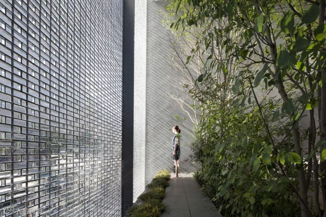 这栋房子的建筑外墙由透明玻璃砖组成,表面非常细腻、光滑,透光效果也非常好 ▼