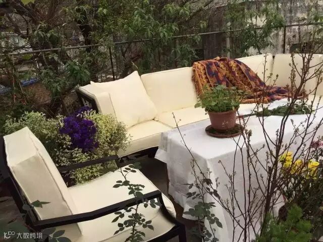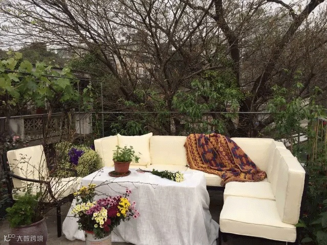 ▲ 天台一角 沙发是户外专用的那种 防雨防晒,也很耐脏。