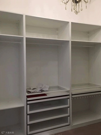 墙终于是刷好了 和妹妹一起去宜家买家具 。喜欢了很久很久很久的衣帽间终于可以带回家了整整三面墙都是柜子。