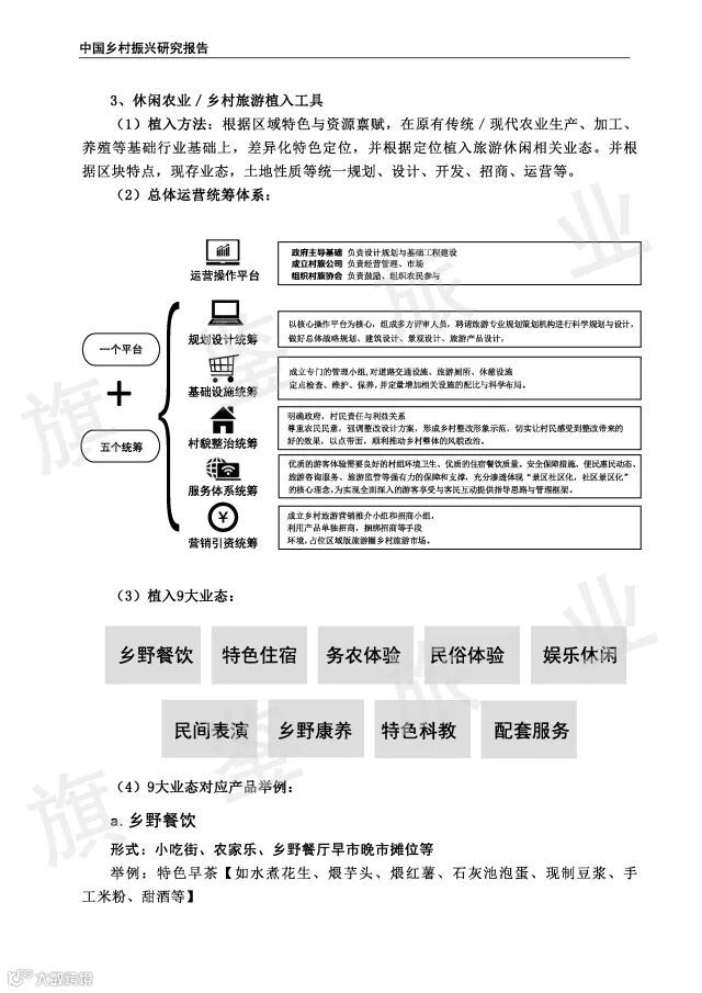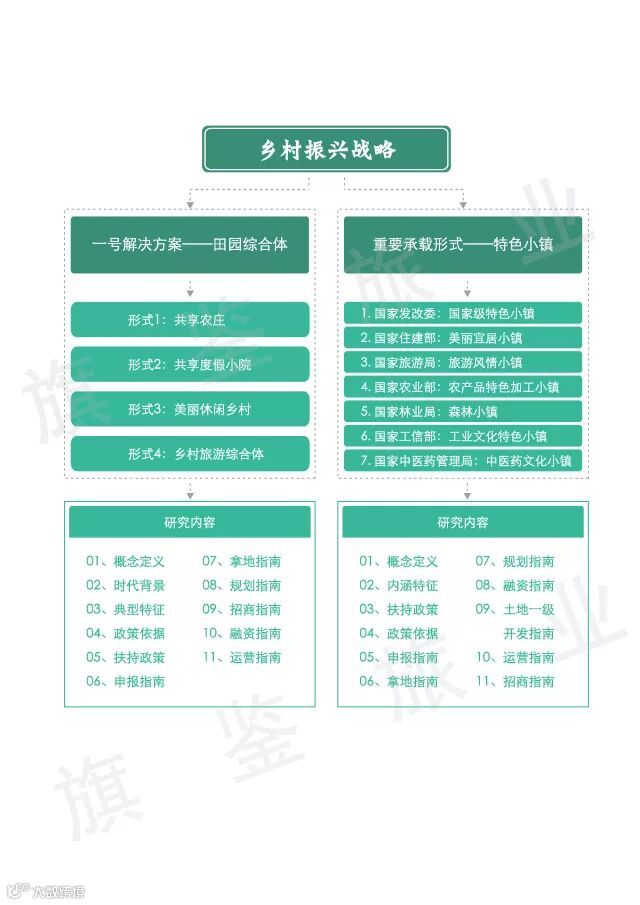 由旗鉴旅业和田园综合体&特色小镇研究院共同编著的《中国乡村振兴政策申报、投资运营研究报告》,将从乡村振兴战略的相关政策及实施路径、田园综合体和特色小镇的概念及案例实操工具等实用内容,全面为您解读中国乡村振兴战略,是特色小镇、田园综合体实战操盘者必备手册!