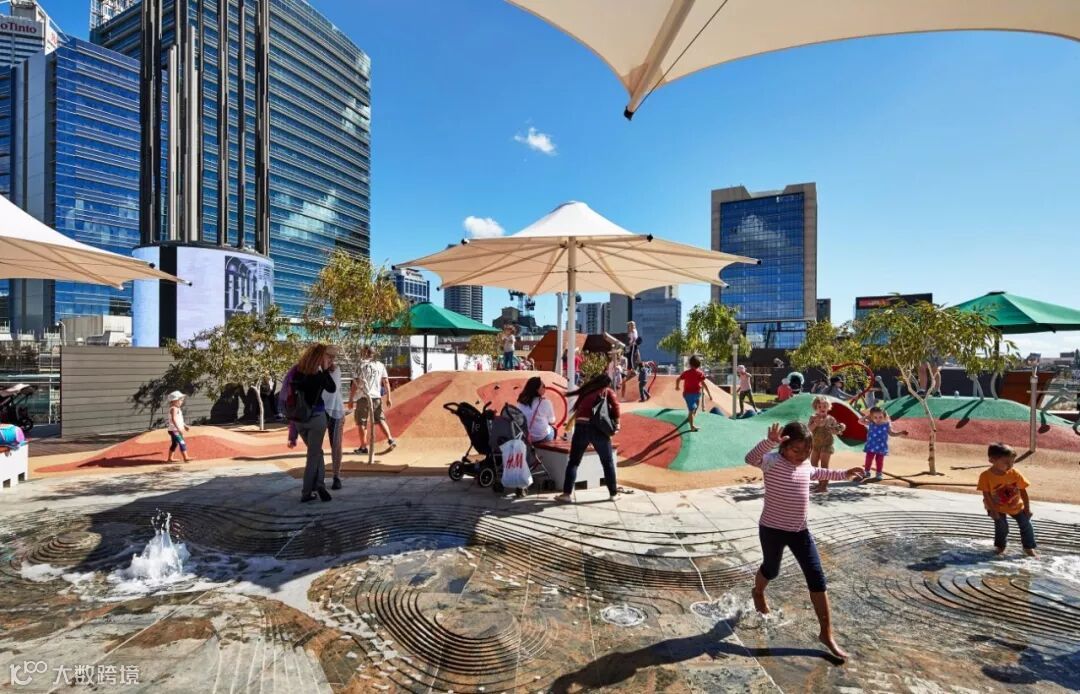 流畅的设计元素提升了场地的体验感,游客可以随意观赏、触摸、感受与享受。
