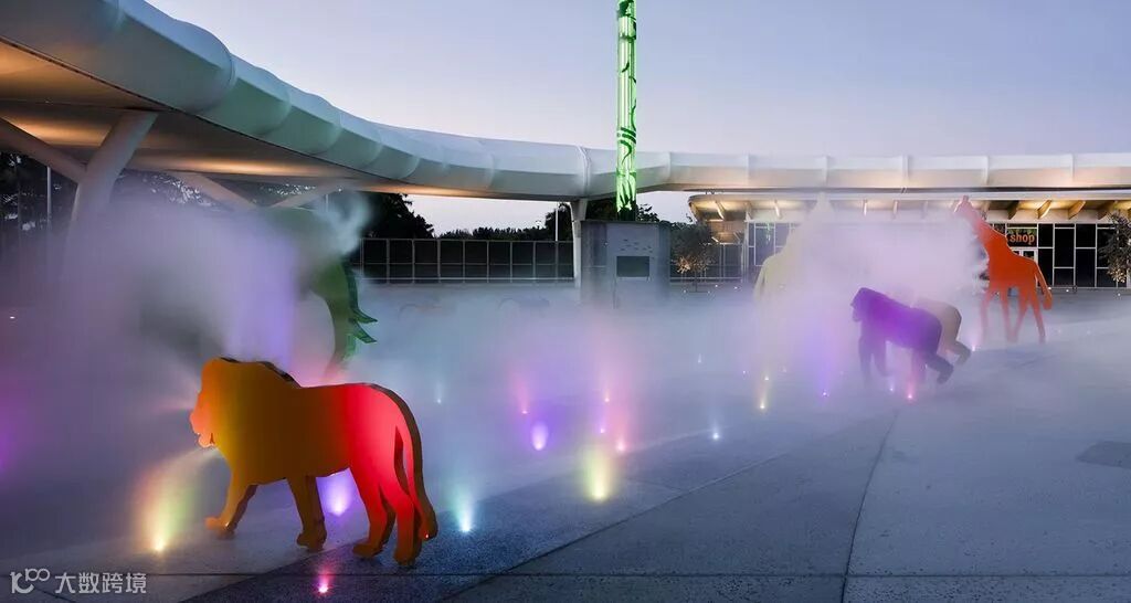 这个多面的项目位于佛罗里达州迈阿密动物园的入口广场,它提供了一个引人注目的公共集会空间,编织了各种各样的雕塑动物和标志元素的颜色和光线的流动地面马赛克。广场的目的地是与粉红火烈鸟展览相协调的一个水坑概念,在这个概念中,冷却的雾在广场上的雕塑动物之间创造了一种游戏的微气候。地面被回收的玻璃块和LED灯照亮,在晚上激活空间。该设计可以灵活地利用空间,允许白天的小型教学教室,晚上的大型活动。