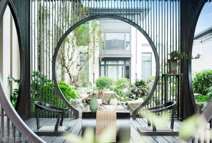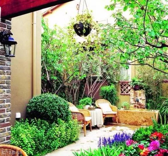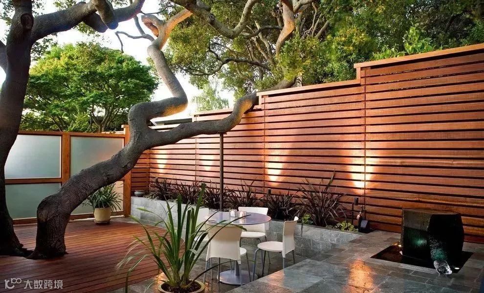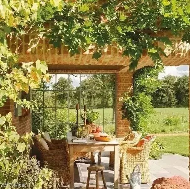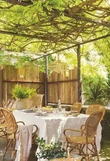 1、花园用餐空间应该按一个房间那样设计,这就意味着设计者要对室外空间的三个面进行设计,以制造一种围合感。
