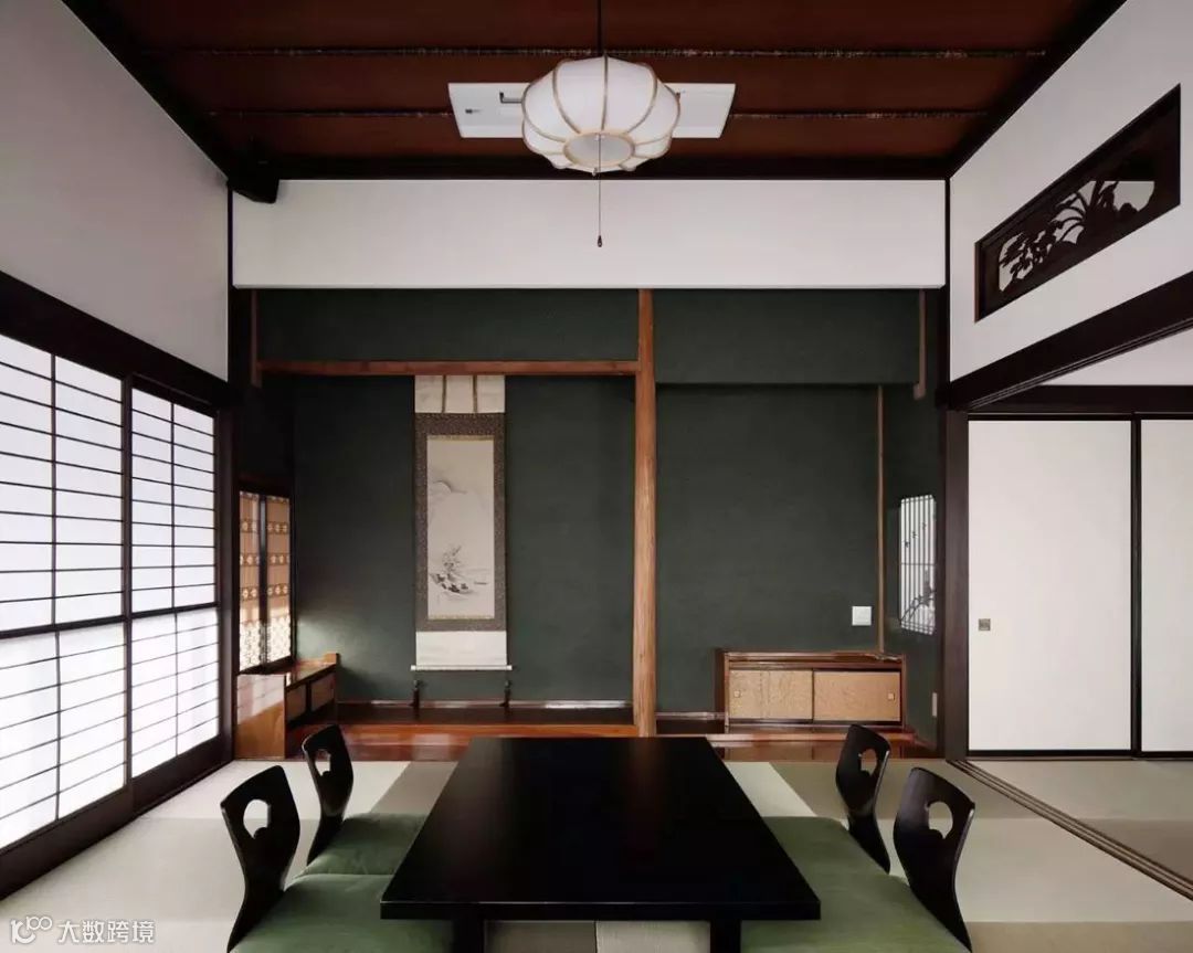 镂空雕花让空间的流动与间隔更加清晰,低矮的日式家具让室内更加通透明亮。墙上的装饰画简单带着山水意境,让就餐的顾客更加的心安与享受。