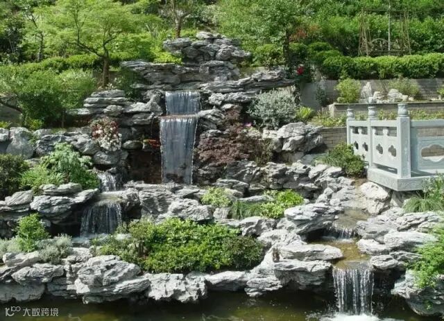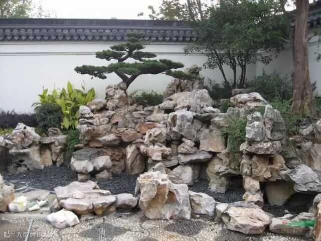 在园林中,当山石与植物组织创造景观时,要根据山石本身的特征和周边的具体环境,精心选择植物的种类、形态、高低大小以及不同植物之间的搭配形式,使山石和植物组织达到最自然、最美的景观效果。柔美丰盛的植物可以衬托山石之硬朗和气势;而山石之辅助点缀又可以让植物显得更加富有神韵,植物与山石相得益彰地配置更能营造出丰富多采、充满灵韵的景观。