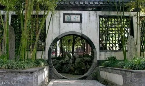 在扬州个园的月洞门之前,有一副粉墙为纸、竹石为画的画面,这里翠竹秀拔、绿荫宜人、石笋参差、搭配有情,使人想起雨后春笋生机勃勃的意境。
