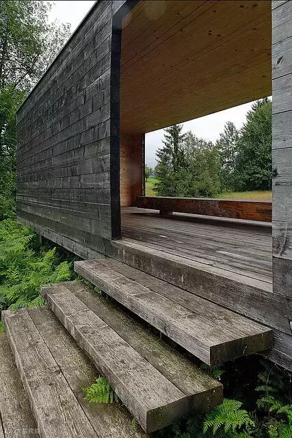 很多木屋建筑借用室外的景色,