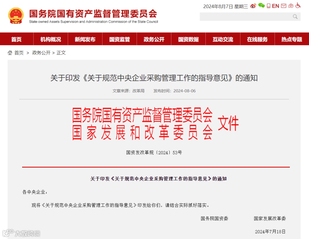 【最新政策】国务院国资委 国家发展改革委 关于印发《关于规范中央企业采购管理工作的指导意见》的通知