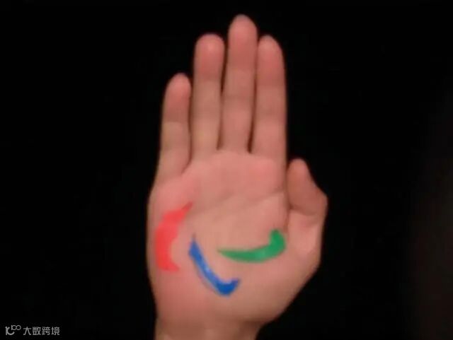 一位盲人的手掌上,映出了一枚国际残奥委会标志。这枚标志,经过手手相传,印在了每一个人的手掌中。这是历届残奥会与冬残奥会“国际残奥委会标志展示”环节中,呈现出的最小的标志。