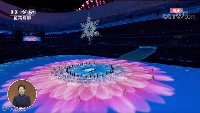 由特效焰火构成的紫色雪花,唯美的绽放在夜空中。为本届冬残奥会祝福、喝彩!
