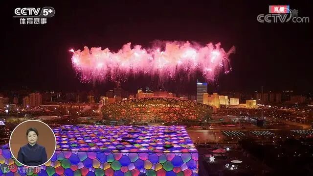 6、鸟巢上空绽放紫色雪花