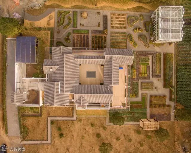 农庄占地面积约20亩,主体是一栋落地约500㎡的中式宅院。户外,便是前庭、后院、菜园,再到大片农田和果林的“庭院园田”四级体系。