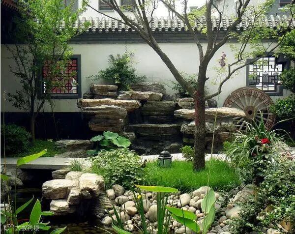 庭院设计的如在庭园内的地面上设置相应的景物,如景石、水池、花坛、雕塑、园灯等,作为庭景的中心卞题;或者通过景窗、景门、敞廓等将墙外的自然景色(如树梢、远山、天空等)引入墙内,借以丰富庭园空间的层次,增添庭院景观的自然气氛以山石环境和建筑物围闭沿墙构廓、高低起伏、曲折空灵,是传统的”化实为虚”的手法。