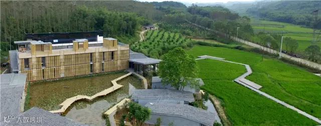 酒店的观景栈道“飘浮”于稻田之上,