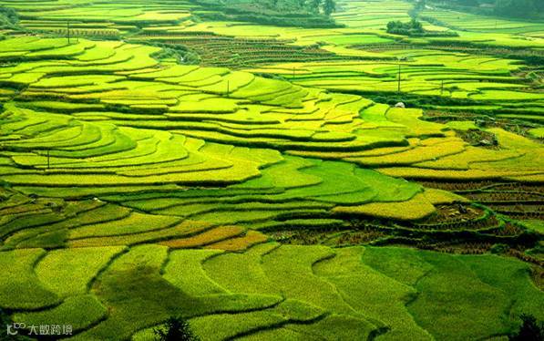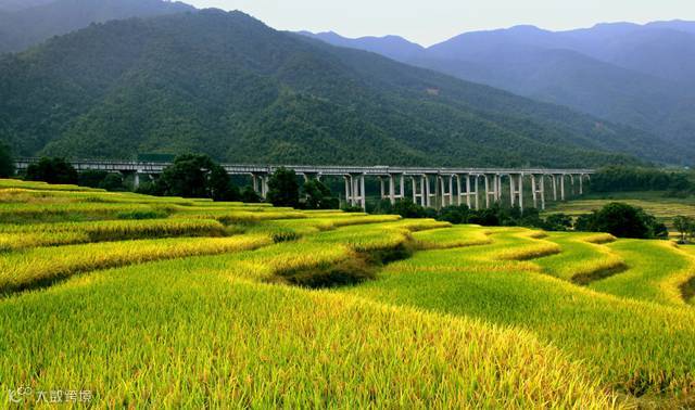 梯田的稻子,在风中摇曳。