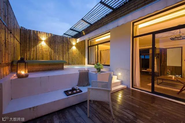 房间设计上故意让邻房共享一隔门,可打开相通,原本独立的房间便合并成一个大庭院。朋友间相互串门,既开拓了私人空间,又不会影响别的客人。