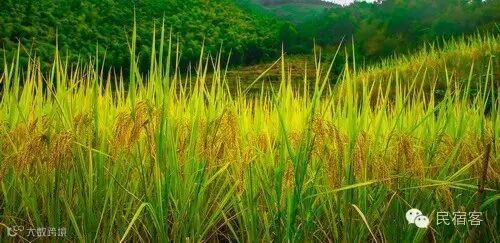累了就望望远处的稻海,