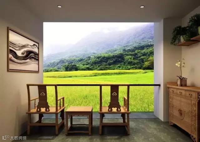 透过窗可以看到成片的稻田,
