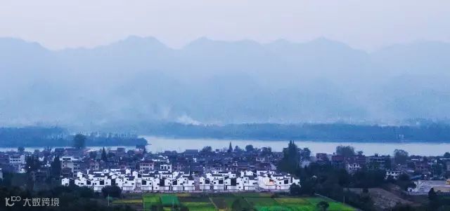 建筑中粉墙黛瓦与自然景观之间