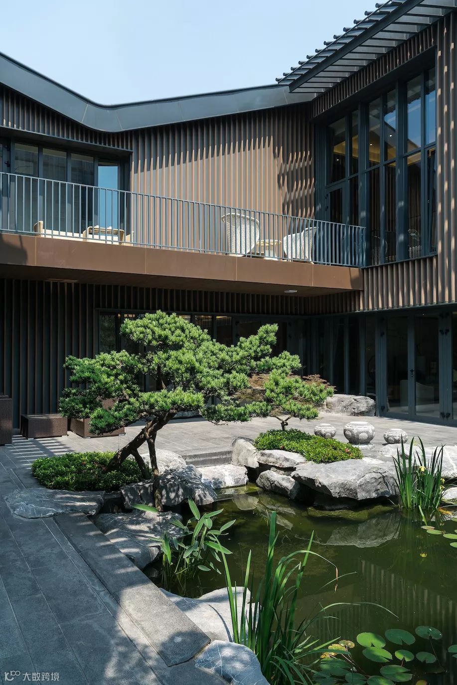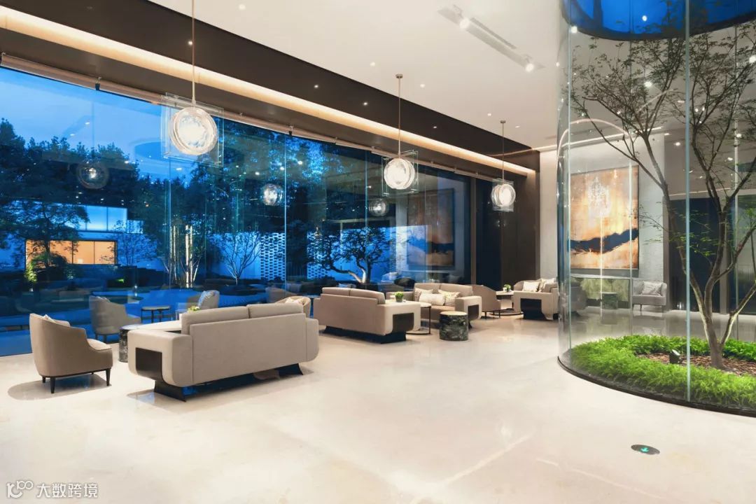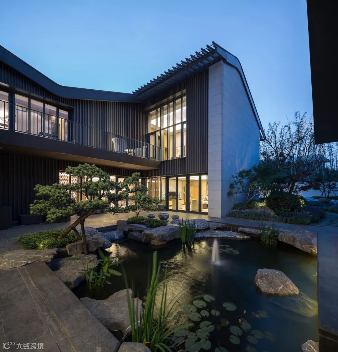 步入中庭,则豁然开朗,设计构建怡情山水间的品质,亦满足主人独坐静思,交友闲谈的生活需求,场地适当留白,可做室外款待。