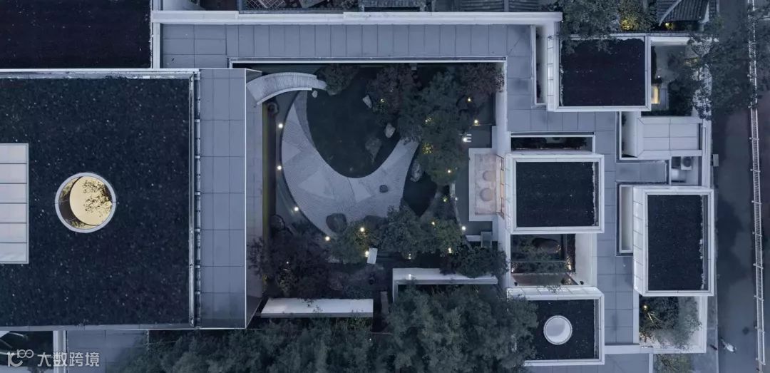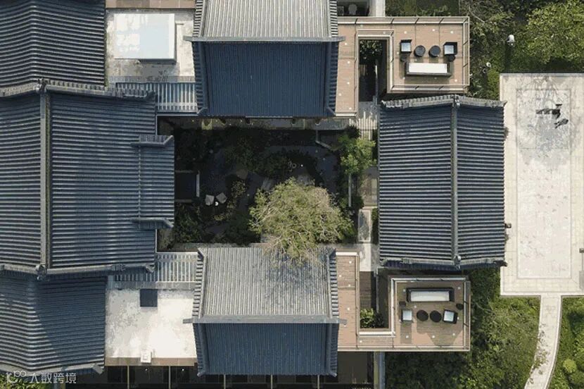 合院,在漫长的文化积累中,是一种精神层面的认同,是符号,是图腾。人们都以仰望的姿态,对其充满幻想。设计中,一方面,设计师谨慎而敏感,从理性人文精神的均衡与安定出发,在自然中创造,将日月星辰的光影,层峦叠嶂的绿意,把四季的繁茂、丰硕和旺盛的生命力纳入其中,在规矩、整体与稳重之间,于端庄的造型和均衡的型制贯穿,唤醒观者对于“传统”微微的律动。