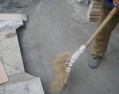 ▲对铺装粘结层干性砂浆的配比要掌握好,干性砂浆一般以拿起握住成球,丢下开花为标准,一般水泥与砂的配比为1:3;