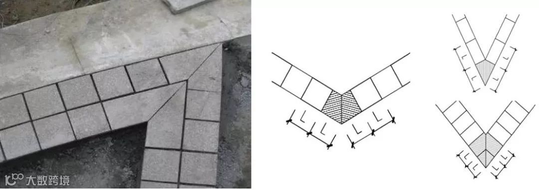 ▲45°对缝铺装处理