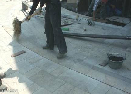 4、扫缝采用细沙或干灰,控制扫缝标高,观感均匀。
